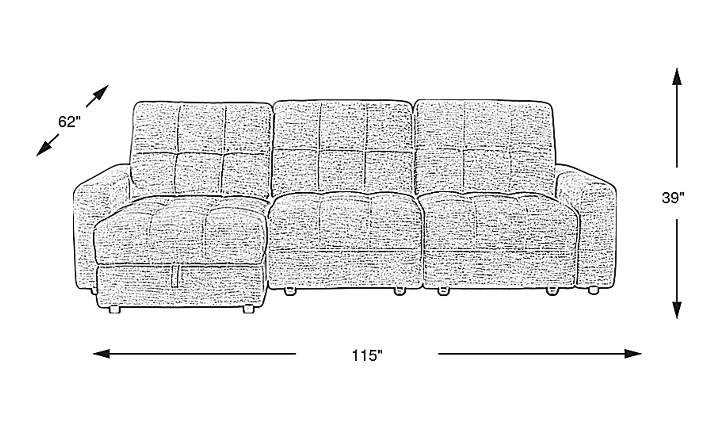 With the serene ease of a luxurious spa day, the Meriwether collection soothes the hours away and offers up ultimate relaxation. This spacious contemporary sectional boasts sophistication and tranquility with wide track arms and plush tufted back and seat cushions wrapped in soft, gray chenille. Each individual piece is upholstered on all sides, creating endless opportunities for reconfiguration and individual use. The power sliding feature allows you to adjust the seat depth to your liking and kick your feet up for perfect relaxation. Additionally, this sectional features convenient storage in its chaise, providing plenty of room for extra blankets, pillows and more. Includes LAF chaise, armless chair, power RAF slider. Upholstery: 100% polyester.