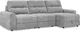 With the serene ease of a luxurious spa day, the Meriwether collection soothes the hours away and offers up ultimate relaxation. This spacious contemporary sectional boasts sophistication and tranquility with wide track arms and plush tufted back and seat cushions wrapped in soft, gray chenille. Each individual piece is upholstered on all sides, creating opportunities for reconfiguration and individual use. On the right, convenient storage in the chaise provides room for extra blankets, pillows and more. The power sliding feature allows you to adjust the armless seat's depth to your liking and kick your feet up for perfect relaxation. Additionally, the left side of the sectional has a power reclining seat with controls built into the inner arm. Upholstery: 100% Polyester.