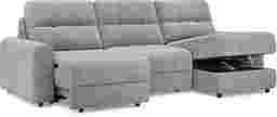 With the serene ease of a luxurious spa day, the Meriwether collection soothes the hours away and offers up ultimate relaxation. This spacious contemporary sectional boasts sophistication and tranquility with wide track arms and plush tufted back and seat cushions wrapped in soft, gray chenille. Each individual piece is upholstered on all sides, creating endless opportunities for reconfiguration and individual use. The power sliding feature allows you to adjust the seat depth to your liking and kick your feet up for perfect relaxation. Additionally, this sectional features convenient storage in its chaise, providing plenty of room for extra blankets, pillows and more. Includes RAF chaise, armless chair, power LAF slider. Upholstery: 100% polyester.