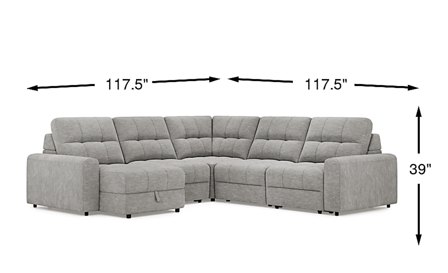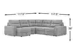 This sectional has a footprint of approximately 117.5 inches by 117.5 inches. We recommend measuring your space and using painter's tape to outline these dimensions on your floor, ensuring you maintain at least 30 to 36 inches of walking clearance around the furniture. Additionally, since this model includes a power slider, be sure to account for extra space in front of the seating for the mechanism to extend fully.