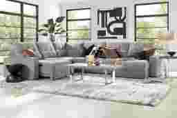 With the serene ease of a luxurious spa day, the Meriwether collection soothes the hours away and offers up ultimate relaxation. This spacious contemporary sectional boasts sophistication and tranquility with wide track arms and plush tufted back and seat cushions wrapped in soft, gray chenille. Each individual piece is upholstered on all sides, creating endless opportunities for reconfiguration and individual use. The power sliding feature allows you to adjust the seat depth to your liking and kick your feet up for perfect relaxation. Additionally, this sectional features convenient storage in its chaise providing plenty of room for extra blankets, pillows and more. Upholstery: 100% Polyester. Cleaning Instructions: Use water based cleaning agents or foam.