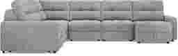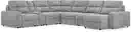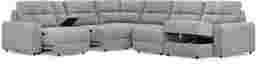 With the serene ease of a luxurious spa day, the Meriwether collection soothes the hours away and offers up ultimate relaxation. This spacious contemporary sectional boasts sophistication and tranquility with wide track arms and plush tufted back and seat cushions wrapped in soft, gray chenille. Each individual piece is upholstered on all sides, creating endless opportunities for reconfiguration and individual use. The power sliding feature allows you to adjust the seat depth to your liking and kick your feet up for perfect relaxation. Additionally, this sectional features convenient storage in its chaise and console providing plenty of room for extra blankets, pillows and more. The console also includes removeable stainless steel cup holders for a convenient final touch. Upholstery: 100% Polyester.