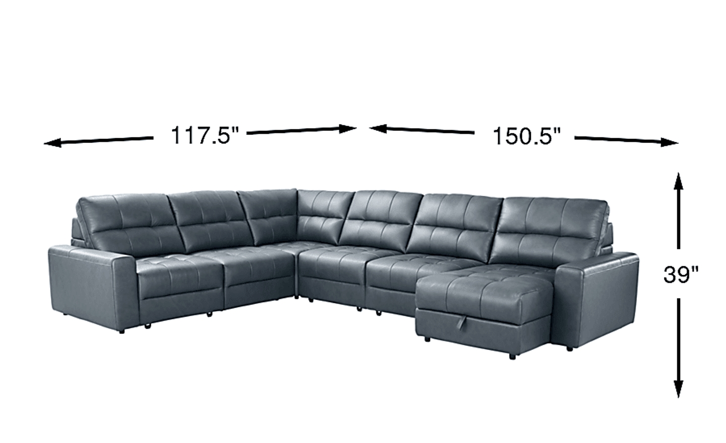 Measuring 150 inches wide, this is a substantial piece of furniture designed for spacious rooms. However, because it is a modular 6-piece set, it is often easier to navigate during delivery than a traditional one-piece sofa. Each component—including the chaise, armless chairs, and wedge—is moved individually, allowing for easier passage through standard door frames and hallways. We recommend measuring your entryways and clearing a path prior to delivery to ensure a seamless setup in your home.