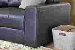 With the serene ease of a luxurious spa day, the Meriwether collection soothes the hours away and offers up ultimate relaxation. This spacious contemporary sectional boasts sophistication and tranquility with wide track arms and plush tufted back and seat cushions wrapped in luxurious top grain leather where the body touches. Each individual piece features all-sides upholstery, creating endless opportunities for reconfiguration and individual use. The power sliding feature allows you to adjust the seat depth to your liking and kick your feet up for perfect relaxation. Additionally, this sectional features convenient storage in its chaise, providing plenty of room for extra blankets, pillows and more. Upholstery: top grain leather where the body touches, vinyl sides and back.