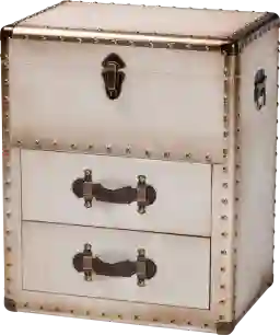 The poise of vintage aesthetics arrives in versatile design with the stunning Meriwethery silver storage cabinet. This lovely piece consists of a sturdy wood frame wrapped in smooth canvas. The lift-top opens to reveal a spacious compartment while two drawers offer additional storage space. The Meriwethery is affixed with faux leather handles as well as an industrial-style metal latch for an enchanting display rich in traditional flair.