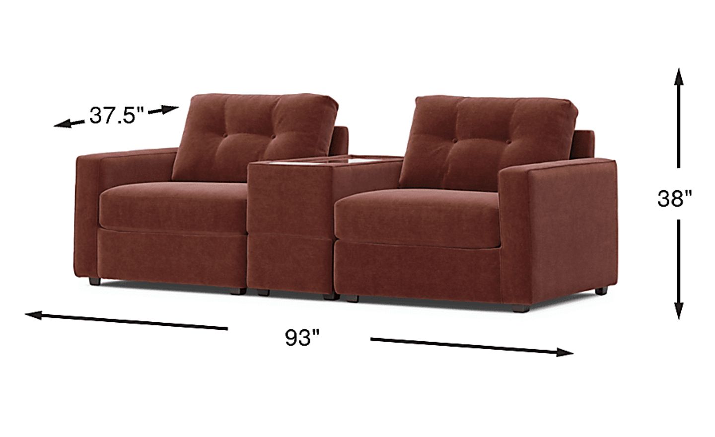 Discover the limitless possibilities of the Drew & Jonathan ModularOne, thoughtfully designed with comfort and flexibility in mind. This customizable seating solution features individual pieces that can be configured to any shape your room needs. Game days, movie nights, sleepovers, and everyday relaxation are all better when the seating arrangement you want is always right at your fingertips. Each individual piece is upholstered on all sides in our signature fabric, New Horizon. This soft, merlot-colored chenille includes Repreve yarn, made with recycled plastic bottles. The dual seating area has welted track arms, top-stitched seat cushions and button-tufted back cushions for an elegant silhouette. A media console provides hidden storage, a USB charging port, wireless charging, bluetooth-enabled speaker, and doubles as a side table with a sleek acrylic top. A matching pillow provides the perfect final touch. Includes LAF chair, console, and RAF chair. Visit a showroom to learn more about individual components and to work with a sales specialist to customize your own configuration today. Upholstery: 100% Polyester.
