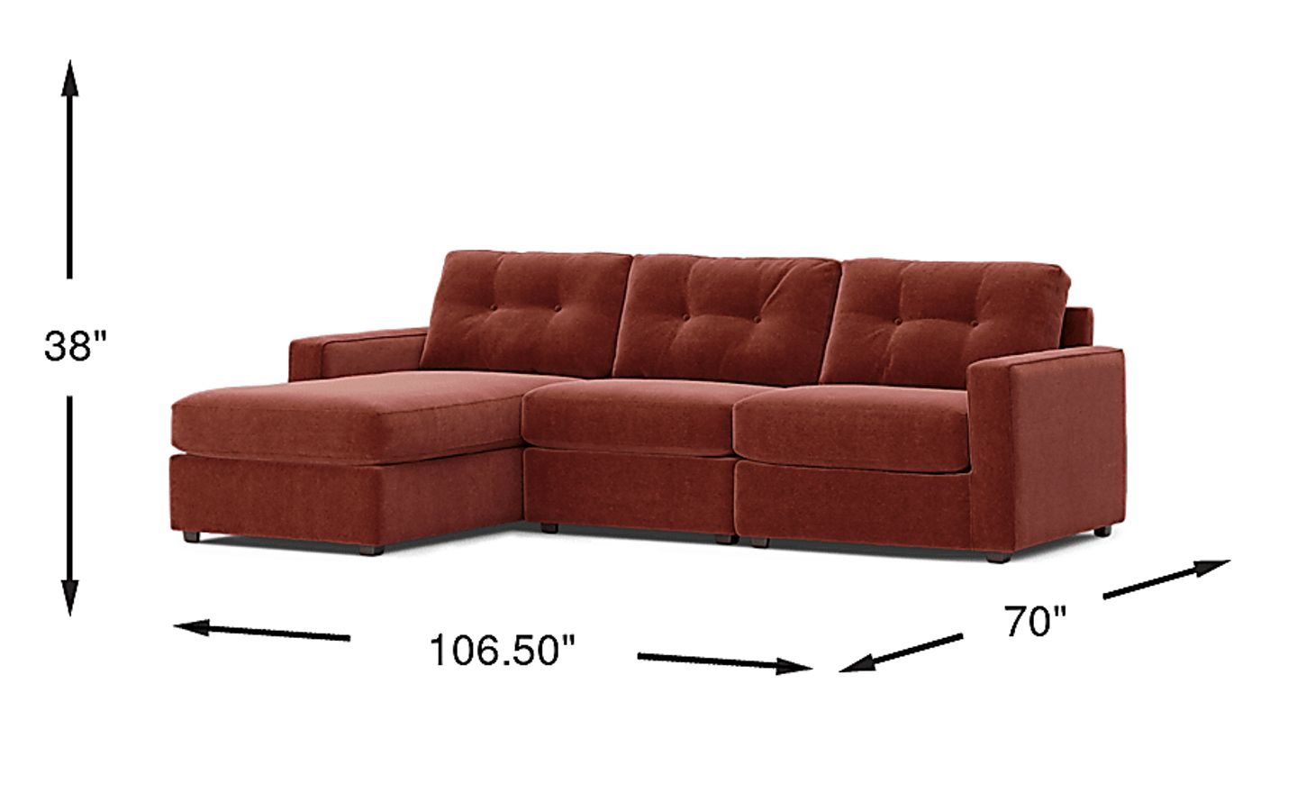 With a total width of 106.5 inches, this sectional provides a generous seating area while maintaining a footprint that fits many standard living rooms. For urban apartment dwellers, the modular design is a significant advantage; because the sofa is delivered as individual pieces (chaise and recliners), it is much easier to navigate through narrow hallways, tight corners, and elevators compared to a traditional large-scale sofa.