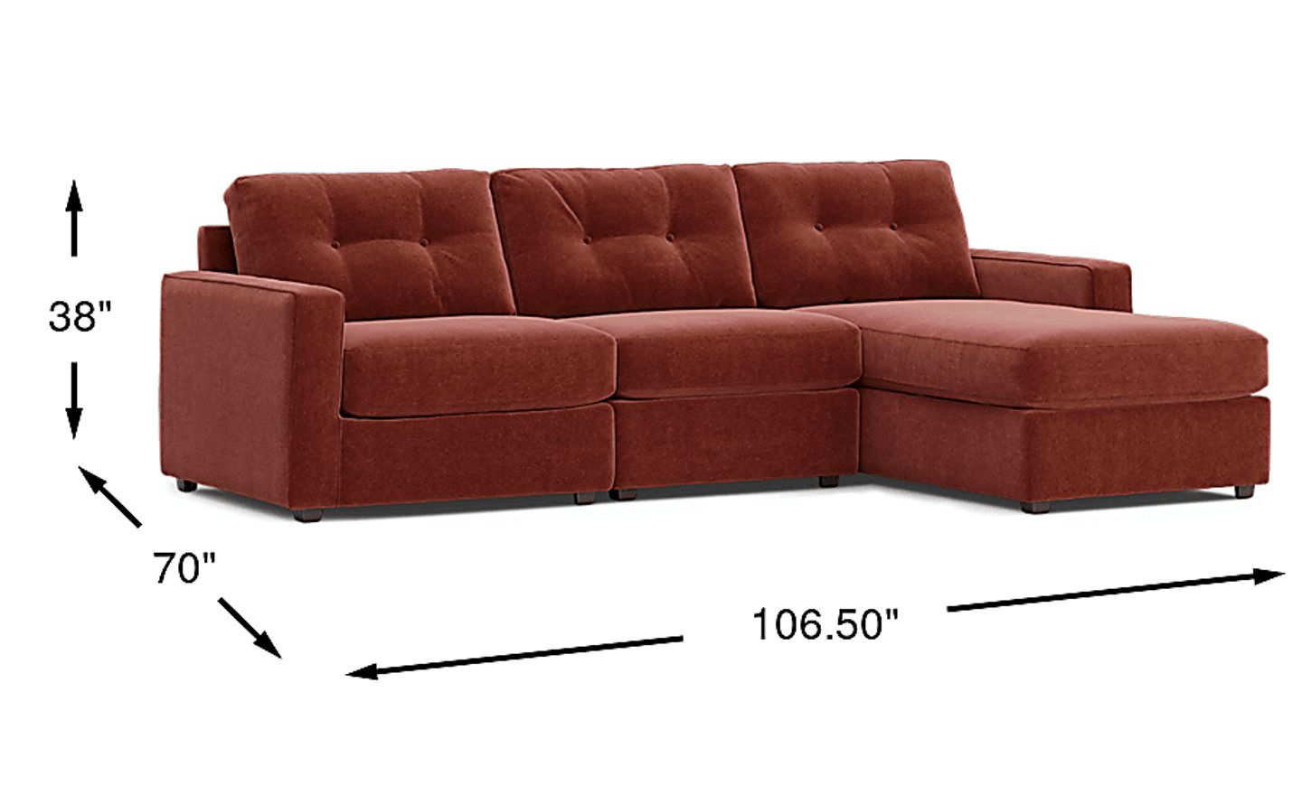 106.50"w x 70.00"d x 38.00"h