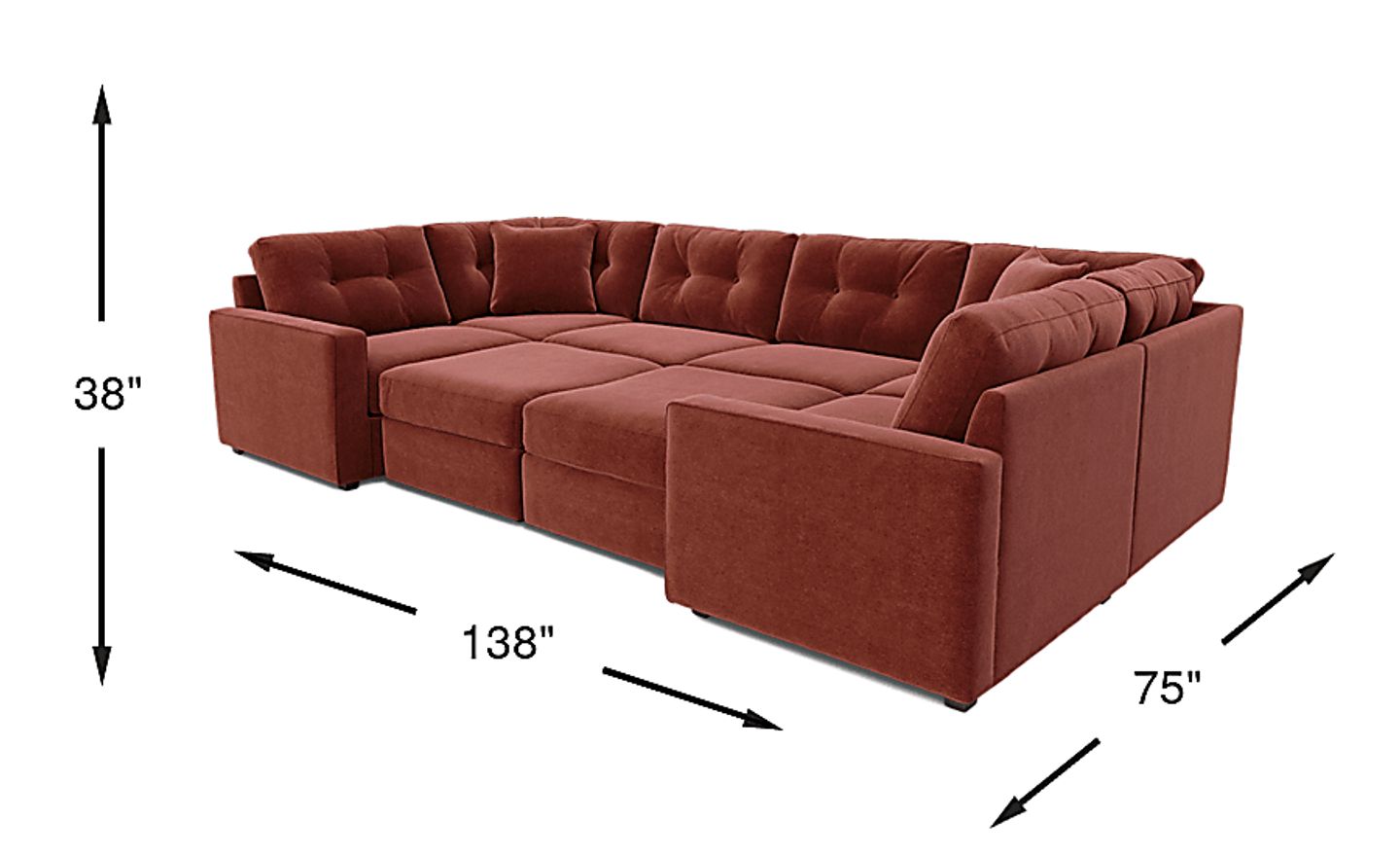 With a total footprint of 138"w x 75"d x 38"h, this sectional is scaled for larger rooms and grand seating needs. However, the modular nature of the "ModularOne" collection is a significant advantage for those in smaller homes or apartments. You can use the individual components to create a smaller seating arrangement that fits your current space, with the option to expand the configuration if you move into a larger home.