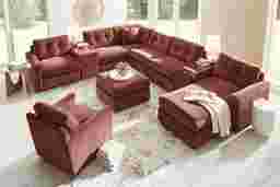 Discover the limitless possibilities of the Drew & Jonathan ModularOne, thoughtfully designed with comfort and flexibility in mind. This customizable seating solution features individual pieces that can be reconfigured to the shape you need. Game days, movie nights, sleepovers, and everyday relaxation are all better when the seating arrangement you want is always right at your fingertips. Each individual piece is upholstered on all sides in our signature fabric, New Horizon. This soft, merlot-colored chenille includes Repreve yarn, made with recycled plastic bottles. The open seating includes a chaise and has welted track arms, top-stitched seat cushions and button-tufted back cushions for an elegant silhouette. Two center consoles provide hidden storage and double as side tables with an acrylic top. A matching pillow provides the perfect final touch. Includes RAF chaise, two consoles, three armless chairs, corner wedge, and LAF chair. Visit a showroom to learn more about individual components and to work with a sales specialist to customize your own configuration today. Upholstery: 100% Polyester.