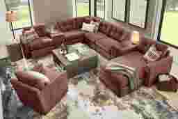 Discover the limitless possibilities of the Drew & Jonathan ModularOne, thoughtfully designed with comfort and flexibility in mind. This customizable seating solution features individual pieces that can be configured to any shape your room needs - the seating arrangement you want is always right at your fingertips. Each individual piece is upholstered on all sides in our signature fabric, New Horizon. This soft, merlot chenille includes Repreve yarn, made with recycled plastic bottles. The seating area has welted track arms, top-stitched seat cushions and button-tufted back cushions for an elegant silhouette. Seats with power reclining functionality allow for easy adjustment of the footrest, providing the ultimate in personalized comfort. Includes RAF chaise, 2 consoles, armless power recliner, 2 armless chairs, wedge, and LAF power recliner. Upholstery: 100% Polyester.
