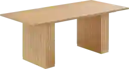 Durable and dreamy, the Mermedia light brown dining table is a classic in every way. Natural oak elicits vacation vibes while the brass base gives it that modest glow-up. Customer assembly is required.