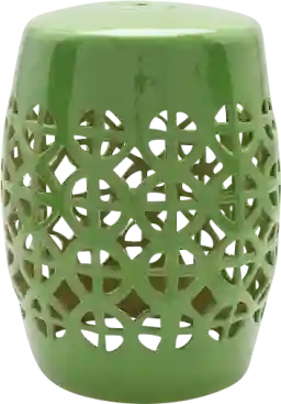 In regions with intense sun exposure, such as Florida or Arizona, ceramic and porcelain are superior to metal furniture because they do not conduct heat as aggressively. This stool remains significantly cooler to the touch even in direct sunlight. Furthermore, the finish is inherently UV-stable, ensuring the vibrant green color and geometric pattern will not fade or peel under harsh solar radiation.