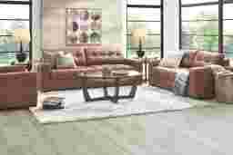 Leave the everyday hustle and bustle behind and melt into absolute luxury every night among the deep, lavish seats of the Messina loveseat. This transitional seat is fully upholstered in soft, glove-like top grain leather on all sides, colored in a gorgeous cinnamon brown. Across the wide cushions and track arms of this piece, top-stitched seams add visual interest and texture. The attached seats and backs are finished with biscuit tufting, accentuating the plush comfort, while the backs are canted at a gentle angle that organically creates a soothing relaxation experience. Upholstery: 100% Top-grain leather.