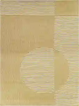 To maintain the vibrant yellow and cream abstract design, we recommend regular vacuuming using a suction-only setting; avoiding a beater bar helps protect the delicate shepherd's stitch edges and refined woven fibers. For accidental spills, the non-absorbent nature of the synthetic polyester material allows for effective spot cleaning—simply blot the area immediately with a clean, white cloth and mild detergent to keep the artisan textures looking new.