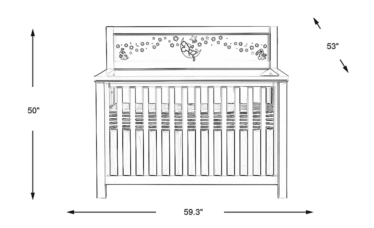 When you're looking for a long-term style for baby's bedroom, the Mickey Mouse and Minnie Mouse collection puts your worries to bed. This crib features a four-position link spring, allowing it to adapt to the different stages of your child's development. The crib can also be converted to a toddler daybed and even a full size platform bed as your loved one grows with the purchase of additional conversion rails. Crafted of hardwood solids in a beautiful painted cloud gray finish, the frame features removable and interchangeable panels that have artful depictions of Mickey Mouse and Minnie Mouse in full color. Mattress and foundation (if required) sold separately. Customer assembly required.