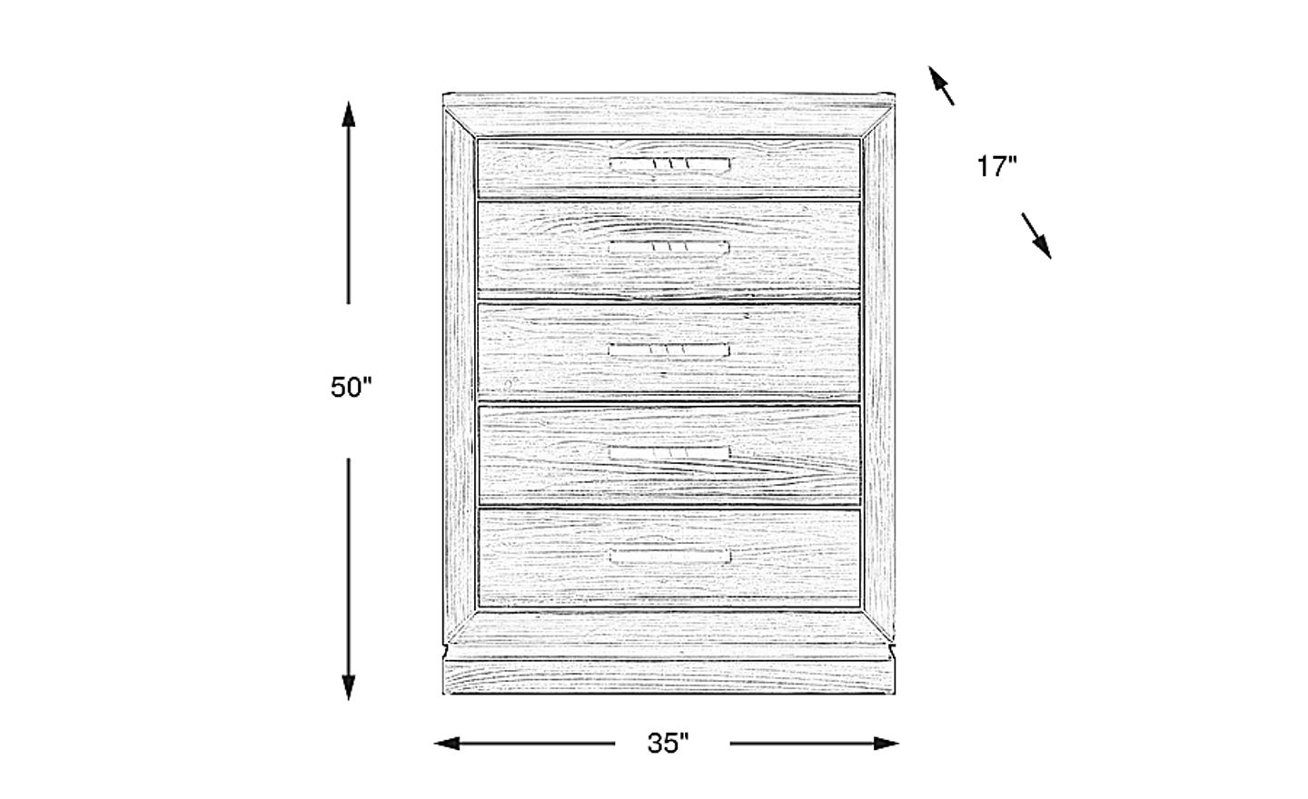 Intriguing and fascinating with a design depth like the brush stroke of a master artist, the Midnight Jewel chest offers an unforgettable look with a mesmerizing personality. Each face of this contemporary accent displays irresistibly rich woodgrain details in honey brown. A beveled frame adds mystique, matched by the rectangular plinth base. Black metal hardware on each of the 5 drawers features subtle symmetrical ridges to add a final tactile element.
