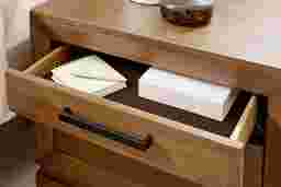 Intriguing and fascinating with a design depth like the brush stroke of a master artist, the Midnight Jewel nightstand offers an unforgettable look with a mesmerizing personality. Each face of this contemporary accent displays irresistibly rich woodgrain details in honey brown. A beveled frame adds mystique, matched by the rectangular plinth base. Black metal hardware on each of the drawers features subtle symmetrical ridges to add a final tactile element.