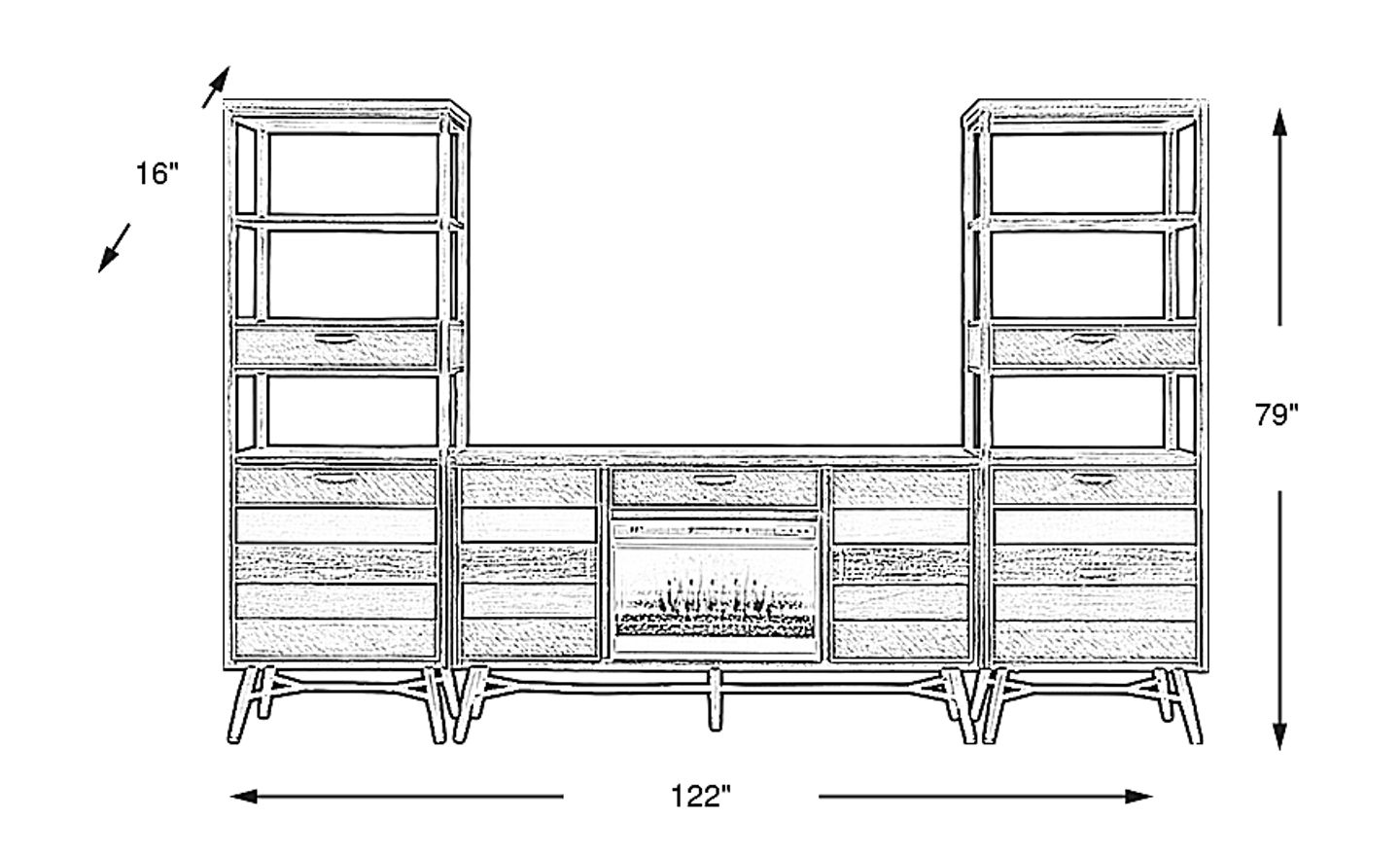 122.00"w x 16.00"d x 79.00"h