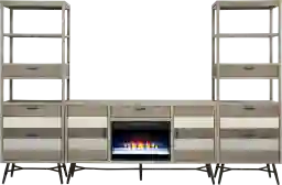 Midtown Loft Gray 4 Pc Wall Unit With 66 In. Console And Electric Fireplace