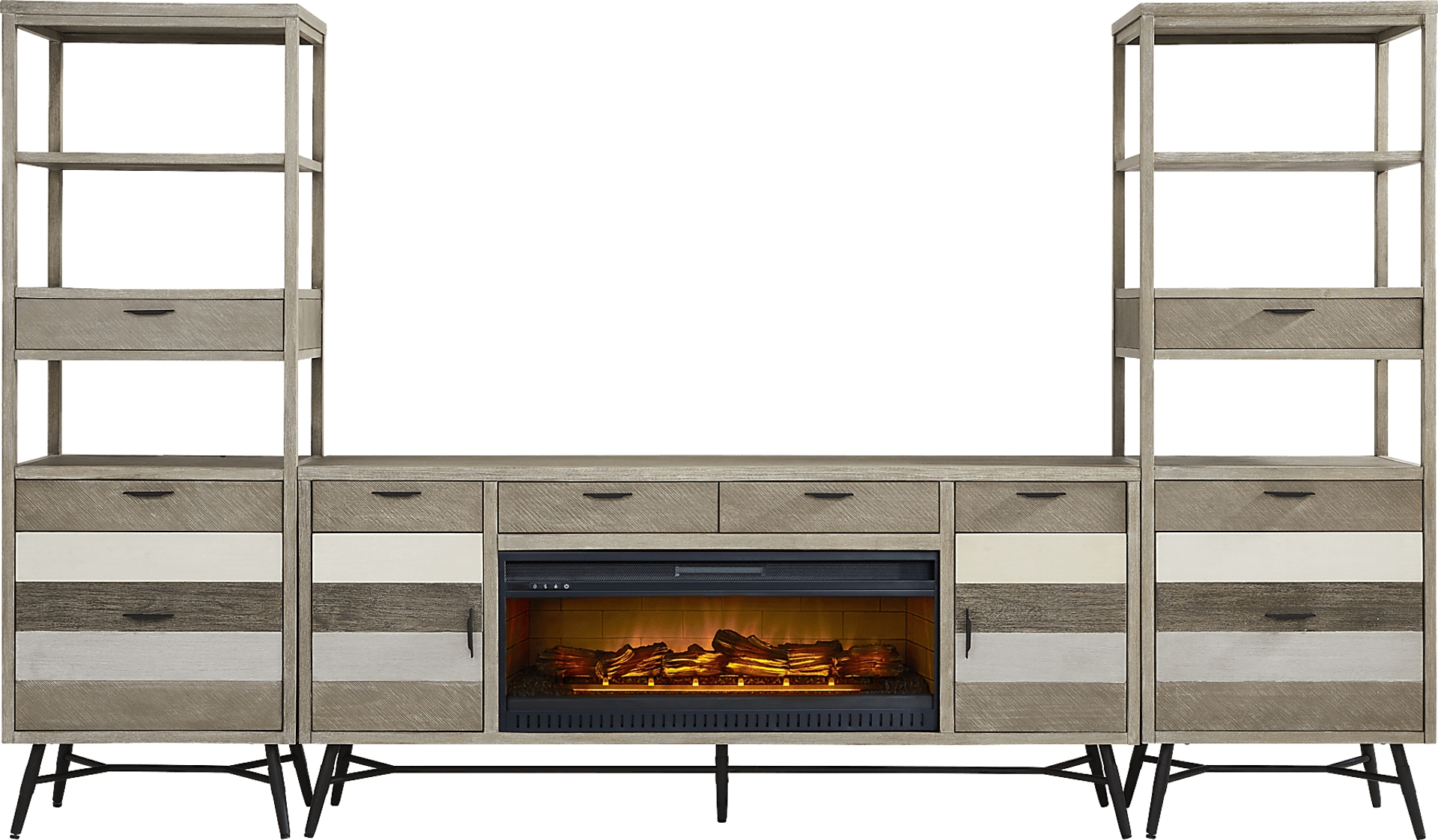 Midtown Loft Gray 4 Pc Wall Unit With 80 In. Console And Electric Log Fireplace