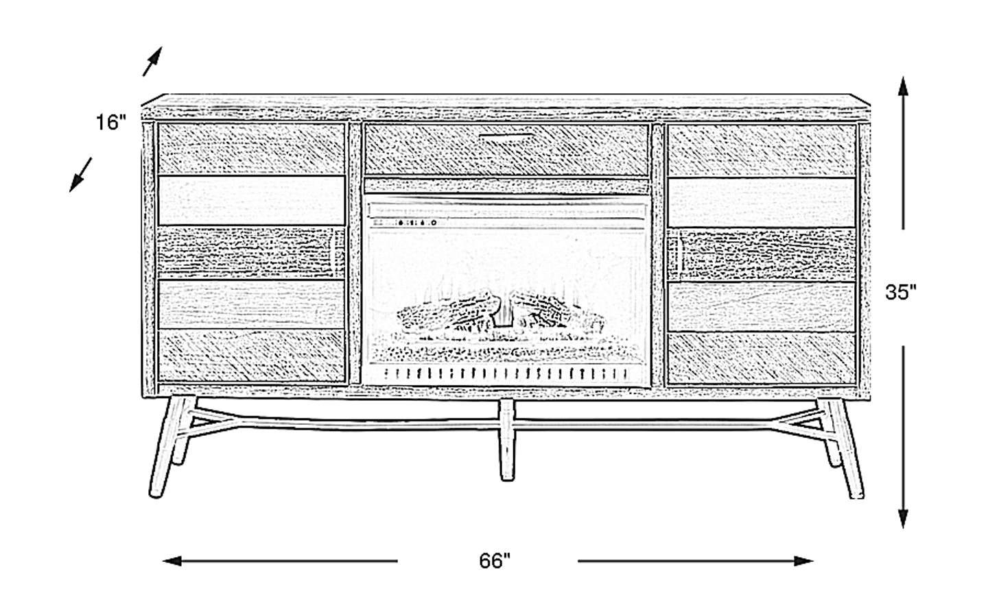 Combining the best of today's most popular designs, the Midtown Loft console boasts a mid-century modern look with a hint of industrial chic style. Crafted of acacia wood and acacia veneers brushed in a variety of greyscale finishes, this contemporary styled piece features plenty of storage space with its top-center drawer and two doors that reveal adjustable shelves for customizable organization. Below the center drawer is a removable fireplace portion with flickering flames and faux embers, working with or without heat for a warm ambiance year-round. Each door is adorned with black metal pulls and boasts multi-colored panels for a dynamic visual flair while black metal trestle legs provide support and a modern edge.