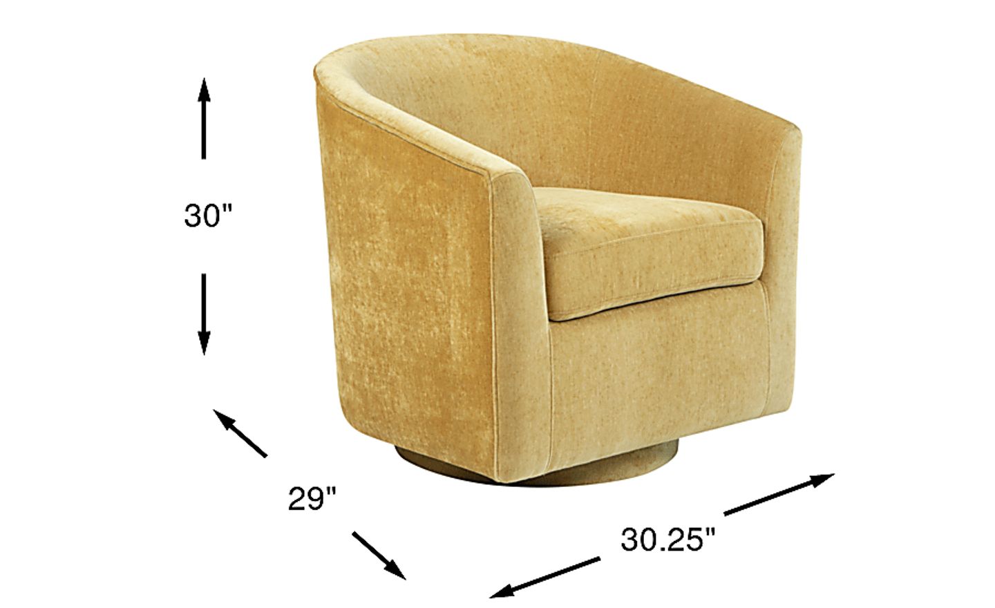 A clean, handsome profile with elegant curves and attractive lines give the Mikaela swivel chair the ability to turn any space into an upscale, down-to-earth relaxation zone. Upholstered in textured sunflower colored boucle fabric, the stylish flare arms add comfort and panache while the attached seat cushion lends an air of sophistication to this modern piece. The swivel base provides the ultimate final touch, giving its occupant the ability to channel their attention to whomever - and wherever - they so choose. Upholstery: 100% Polyester.