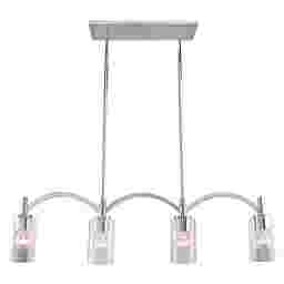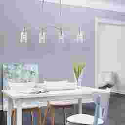 With gentle, sloping lines and warm light, the Milburn Farms linear pendant suits the soft modern or traditional home. Arched arms give this pendant a contemporary feel of elegance, and the chrome finish with the clear round glass shades adds a nuance of sophistication. Professional installation by an electrician recommended.