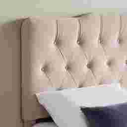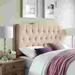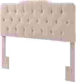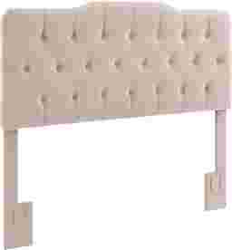 Fantastic style and plush padding make this tufted headboard a standout accent for your bedroom. Created with beautiful fabric that brings out the details in every pleat, the Milfoil headboard features smart color-matched button tufting that forms a row of textured harlequin-like diamonds across the center. The modified camel back silhouette offers a subtle plateau in the top center for a sense of lofty elegance. Two sturdy wood support legs bolt to most commercial bed frames, not included, and headboard height can be adjusted to accommodate various mattresses. Customer assembly is required.PRODUCT WEIGHT 53.9 LBS