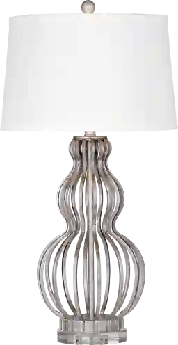 The Milford Mally table lamp features three stunning tiers and a silver leaf finish, adding a touch of lustrous shine to any living area. Some customer assembly required.