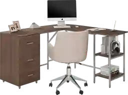 This desk features an efficient L-shaped design with dimensions of 59"W x 54"D x 30"H, making it an excellent choice for maximizing corner real estate. This configuration allows you to create a dedicated, wraparound workspace that fits snugly against walls, freeing up the center of your room for other furniture or movement.
