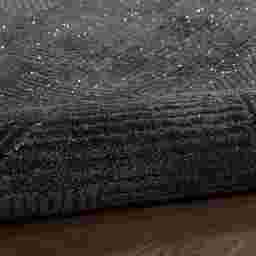 The "shimmering accents" are achieved through the use of lurex fibers woven into the abstract linear pattern. These fibers are designed to catch and reflect light, meaning the rug’s appearance will subtly shift as you move through the room or as natural light changes throughout the day. In a brightly lit space, the metallic-like threads provide a dynamic glow, while in softer evening light, the deep black tones offer a more grounded, modern foundation.