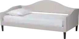 Subtle and laidback in its design, the Millyann daybed brings tranquil comfort to any bedroom space. The bed is comprised of a sturdy wood frame padded with plush layers of foam and upholstered in smooth fabric. Smooth curved back creates an elegant silhouette while sloped arms encourage carefree relaxation. The Millyann requires assembly and utilizes wood slats for mattress support, eliminating the need for a box spring. Tapered legs complete the look, making the Milligan daybed a remarkable addition to the modern home. Customer assembly required.