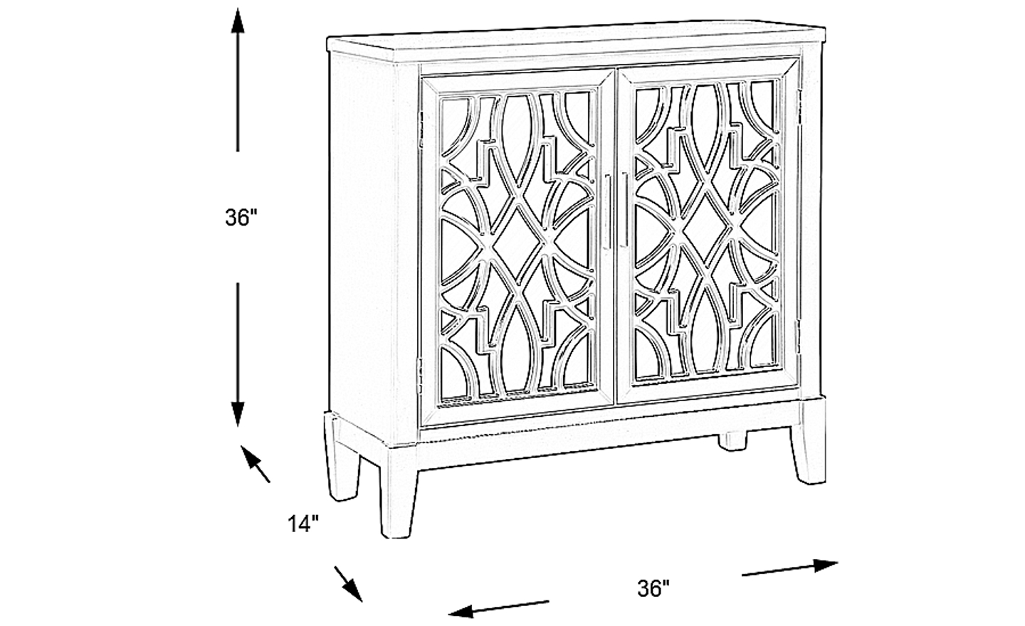 The stylish Minetta II accent cabinet offers a creative solution to decorative storage. Finished in an on-trend gray color, its mirrored doors feature a gorgeous geometric overlay. Hidden behind the doors is a shelf that makes convenient space for games, books and more.