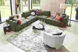 The story of your space is waiting to unfold, its memories, laughs, movie nights and great times, all with the Drew & Jonathan ModularFour living room as the setting you configure to bring it to life. This customizable contemporary seating solution features individual pieces that can be reconfigured endlessly to the shape you need. All-sides upholstery in mink brown chenille offers modern style and comfort at every angle while large, rounded wedge arms invite long sessions of indulgent relaxation. Effortlessly tailor your seating arrangement for everything from game days to sleepovers to everyday relaxation with easy-to-use connectors for rock solid stability. The included media consoles feature integrated bluetooth-enabled speakers, USB-A and USB-C charging, and can connect with up to 5 additional media consoles for an incredible surround-sound experience. Includes left arm chair, two media consoles, two armless chairs, wedge and right arm chair. Visit a showroom to learn more about individual components and to work with a sales specialist to customize your own configuration today. Upholstery: 100% Polyester.