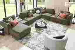 The story of your space is waiting to unfold, its memories, laughs, movie nights and great times, all with the Drew & Jonathan ModularFour living room as the setting you configure to bring it to life. This customizable contemporary seating solution features individual pieces that can be reconfigured endlessly to the shape you need. All-sides upholstery in mink brown chenille offers modern style and comfort at every angle while large, rounded wedge arms invite long sessions of indulgent relaxation. Effortlessly tailor your seating arrangement for everything from game days to sleepovers to everyday relaxation with easy-to-use connectors for rock solid stability. The included consoles feature integrated USB-A and USB-C charging for ultimate convenience. Includes left arm chaise, two consoles, three armless chairs, wedge and right arm chair. Visit a showroom to learn more about individual components and to work with a sales specialist to customize your own configuration today. Upholstery: 100% Polyester.