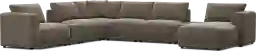The story of your space is waiting to unfold, its memories, laughs, movie nights and great times, all with the Drew & Jonathan ModularFour living room as the setting you configure to bring it to life. This customizable contemporary seating solution features individual pieces that can be reconfigured endlessly to the shape you need. All-sides upholstery in mink brown chenille offers modern style and comfort at every angle while large, rounded wedge arms invite long sessions of indulgent relaxation. Effortlessly tailor your seating arrangement for everything from game days to sleepovers to everyday relaxation with easy-to-use connectors for rock solid stability. The included consoles feature integrated USB-A and USB-C charging for ultimate convenience. Includes left arm chair, two consoles, three armless chairs, wedge and right arm chaise. Visit a showroom to learn more about individual components and to work with a sales specialist to customize your own configuration today. Upholstery: 100% Polyester.