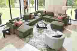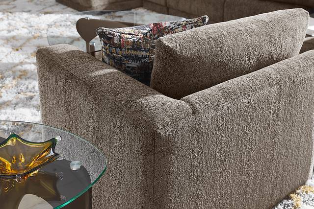 The story of your space is waiting to unfold, its memories, laughs, movie nights and great times, all with the Drew & Jonathan ModularFour living room as the setting you configure to bring it to life. This customizable contemporary seating solution features individual pieces that can be reconfigured endlessly to the shape you need. All-sides upholstery in mink brown chenille offers modern style and comfort at every angle while large, rounded wedge arms invite long sessions of indulgent relaxation. Effortlessly tailor your seating arrangement for everything from game days to sleepovers to everyday relaxation with easy-to-use connectors for rock solid stability. The included media consoles feature integrated bluetooth-enabled speakers, USB-A and USB-C charging, and can connect with up to 5 additional media consoles for an incredible surround-sound experience. Includes left arm chaise, two media consoles, three armless chairs, wedge, ottoman and right arm chair. Visit a showroom to learn more about individual components and to work with a sales specialist to customize your own configuration today. Upholstery: 100% Polyester.