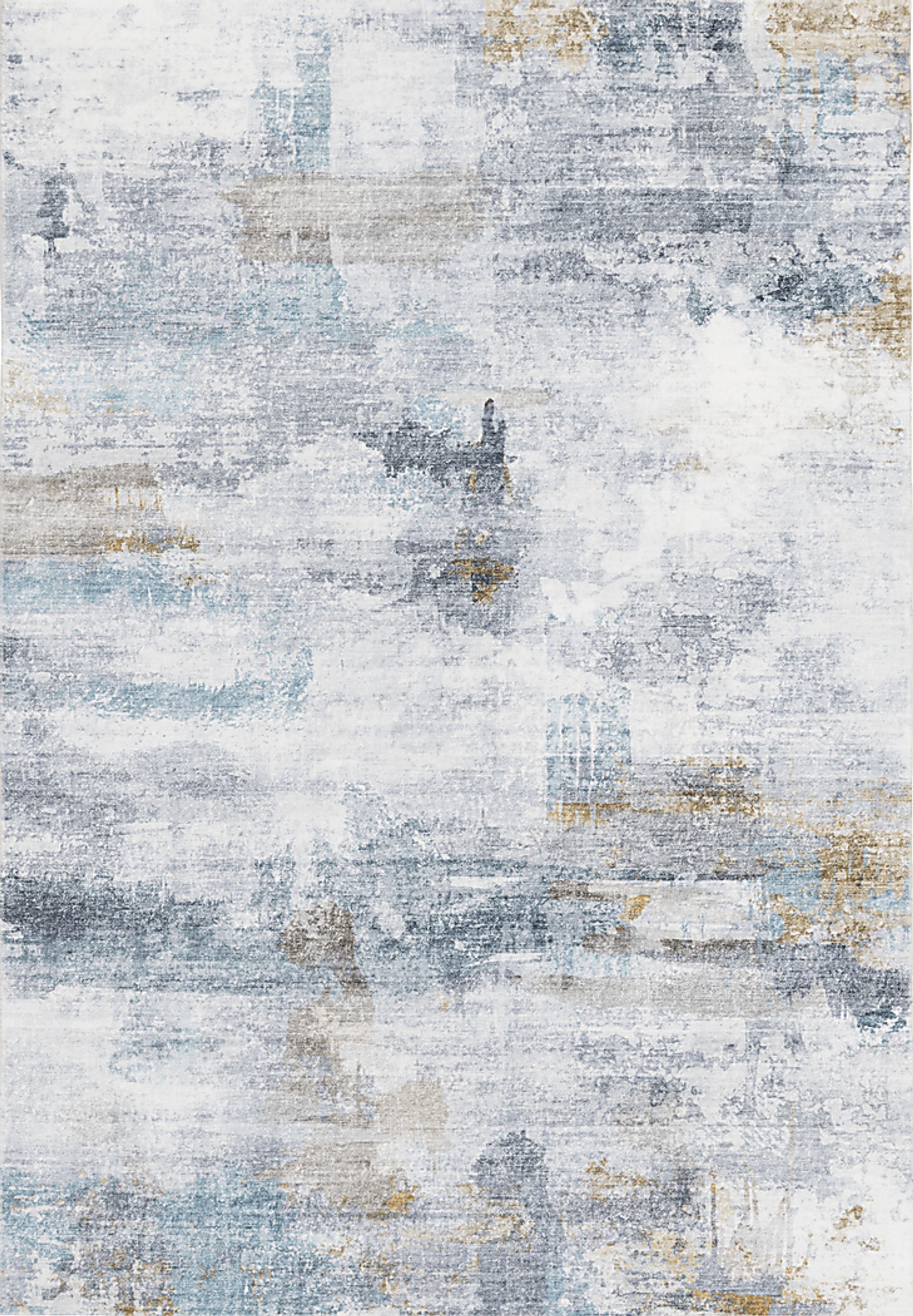 The abstract pattern serves as a versatile "bridge" piece for various interior styles. The neutral gray base provides a sophisticated foundation, while the splashes of blue and gold allow you to pull accent colors from your throw pillows, artwork, or upholstery. This multi-tonal palette is particularly effective at hiding minor lint or tracking between cleanings, making it as practical as it is stylish.