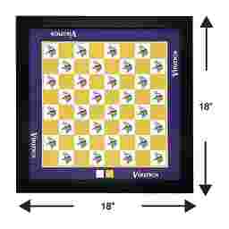 Elevate your game with this vertical chess board featuring the iconic Minnesota Vikings colors and logo. This stunning piece not only functions as a challenging mental workout but also serves as eye-catching wall art that showcases your team pride. Each chess piece is secured with powerful magnets, ensuring your game stays intact, whether you play at the table or display it on your wall. Immerse yourself in the strategy of chess while celebrating your favorite team for years to come.