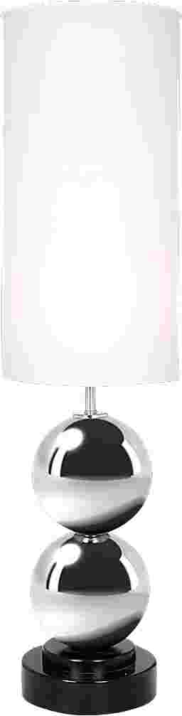 Update your living room or bedroom in modern and contemporary style with the Miraflores table lamp. Constructed of polished chrome and featuring a base with a bold, black finish, this uniquely-shaped lamp is cylindrical in form. Its attractive velvet shade is white. The lamp features a handy three-way socket switch and requires one bulb, which is not included.