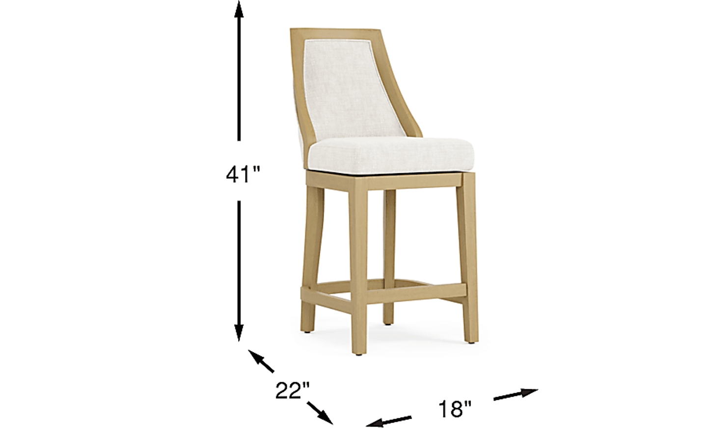 Poetic presence takes form in the measured grace of the Miramar stool, a study in simplicity and pure elegance. This contemporary accent elevates your counter-height seating with an oak finish and an upholstered barrel-style seat and back. A footrest bar below offers additional stability and comfort. Swivel movement is built into the frame, imbuing brilliant function to match its refined form.