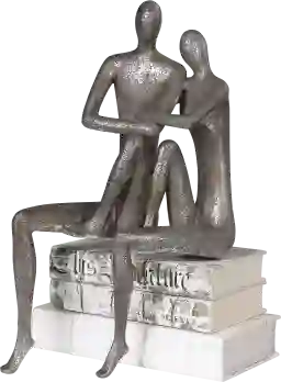This figurine features a porous textured surface finished in a lightly antique nickel. The metallic finish offers a sophisticated, industrial-inspired look that captures light beautifully, while the porous texture adds a handcrafted, multi-dimensional quality. This combination makes it a refined choice for those looking to add a touch of gallery-style art to their living space.