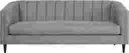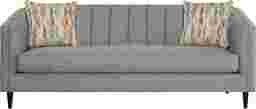 Bring retro flair to your home with the Mod Place sofa. Upholstered in a woven linen style fabric in ash, this sofa features sloping arms and tufted vertical channeling. A bench cushion offers a unique touch, while tapered legs in a classic black finish complete the look. Add a splash of color with diamond patterned accent pillows, included. 100% Polyester