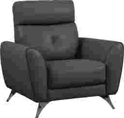 Thoroughly modern and sophisticated, the Modena chair has a striking silhouette. From the chic lines to the luxurious black leather where the body touches, this chair is a beautiful expression of contemporary style. A delicate back tufted cushion, attached seat cushion and padded headrest provide stylish support. Shaped arms and angled chrome finished legs complete the elegant, tailored look. Top Grain Leather Where The Body Touches and Blended Leather (polyurethane fabric blended with leather particles) sides and backs.