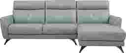 The Modena sectional is a testament to fresh, modern living. Delicate tufting along back cushions and attached seat cushions give it an invitingly tailored look. Upholstered in luxurious top grain leather where the body touches in a chic sky blue color, padded headrests give it a supportive and comfy structure. Shaped arms and sleek angled legs complete the look of this sectional, making it a must have for your living area. Top Grain Leather Where The Body Touches and Blended Leather (polyurethane fabric blended with leather particles) sides and backs.