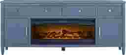 Modern Villa Slate Blue 82 In. Console With Electric Log Fireplace