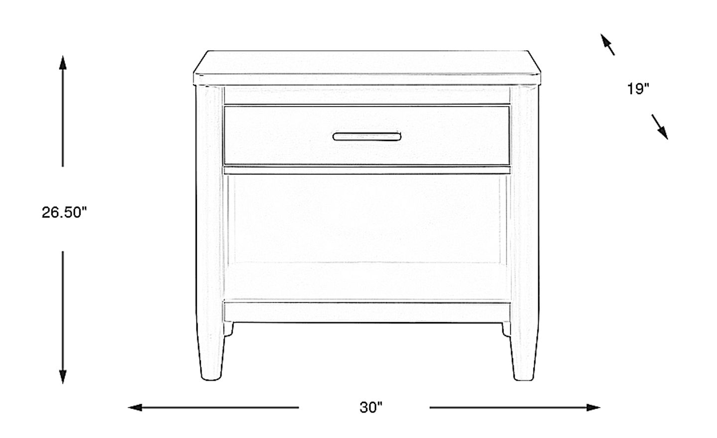 Clean, strong lines accompany the sleek elegance of the Modern Villa nightstand to deliver a powerful feeling of Zen to your room of respite. Constructed of poplar solids in a stunning iron ore finish, this modern piece's captivating presence adds a handy horizontal element to the proceedings. A drawer with French dovetail jointing and ball bearing side mount glides delivers an easy open and close, and a cubby on the bottom keeps sleep essentials and nighttime reads close at hand. Concealed USB-A and USB-C ports on the back provide convenient charging as well. Metal knobs and pulls in a gold finish highlight the neutral tones for the perfect final touch.