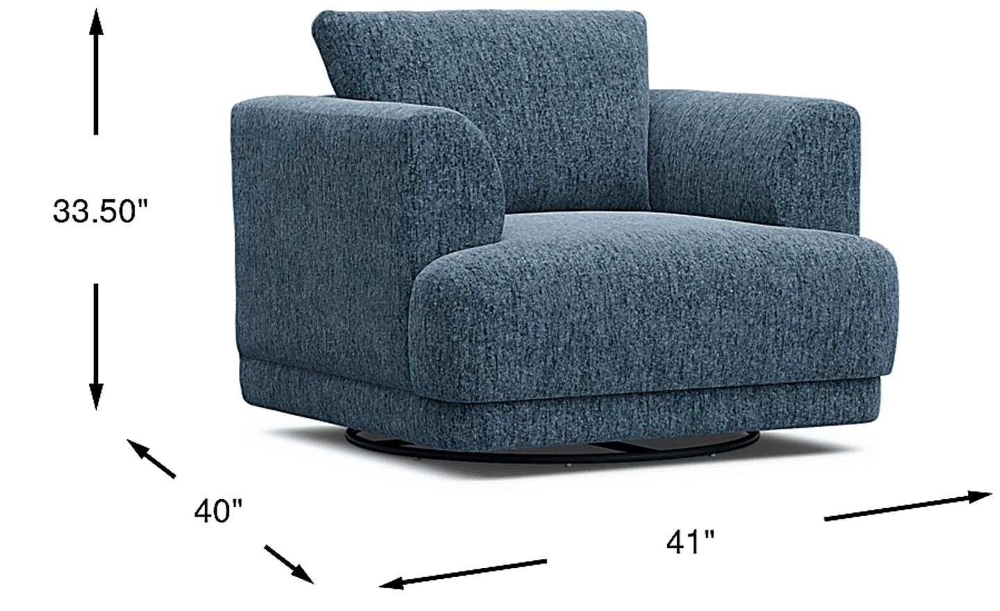 Measuring 41"W x 40"D x 33.50"H, this chair is a perfect fit for a cozy corner reading nook or as a standalone statement piece. Its swivel base is particularly useful in corners, as it allows the chair to be positioned closely to the wall while still maintaining the flexibility to rotate toward the center of the room for social interaction.