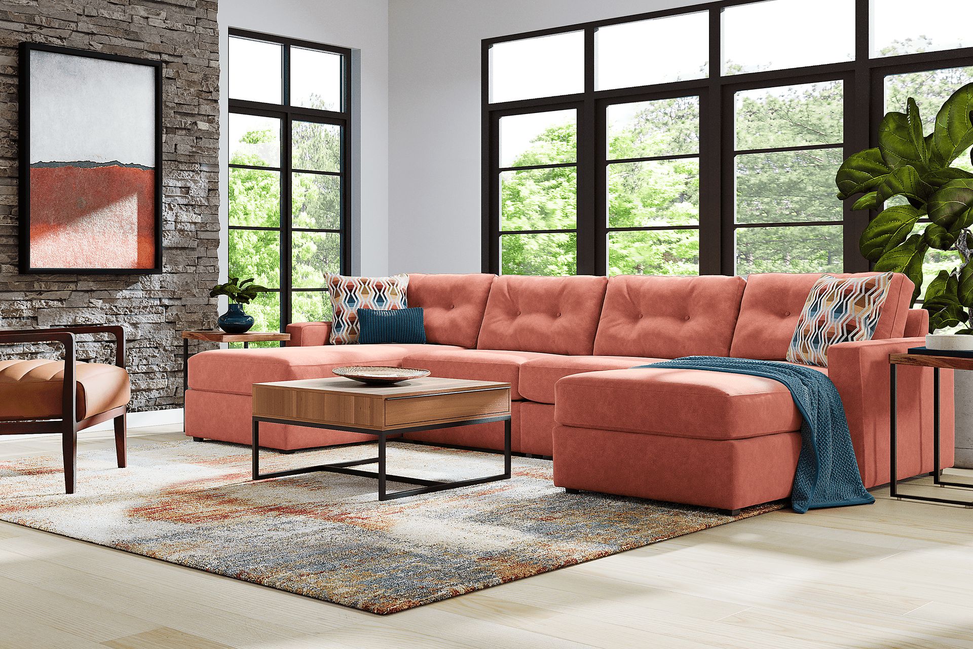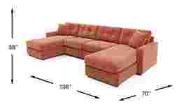Discover the limitless possibilities of the Drew & Jonathan ModularOne sectional, thoughtfully designed with comfort and flexibility in mind. This customizable seating solution features individual pieces that can be configured to any shape your room needs. Game days, movie nights, sleepovers, and everyday relaxation are all better when the seating arrangement you want is always right at your fingertips. Each individual piece is upholstered on all sides in our signature fabric, New Horizon. This soft, copper chenille includes Repreve yarn, made with recycled plastic bottles. The seating area has welted track arms, top-stitched seat cushions and button-tufted back cushions for an elegant silhouette. Includes LAF chaise, two armless chairs, & RAF chaise. Visit a showroom to learn more about individual components and to work with a sales specialist to customize your own configuration today.